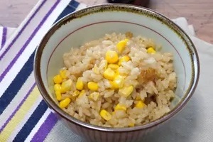 とうもろこしの甘みが引き立つ簡単とうもろこしごはんです。