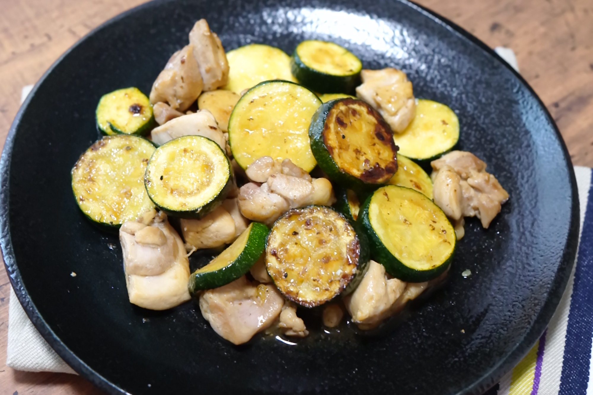 鶏もも肉とズッキーニのゆずぽん酢炒め