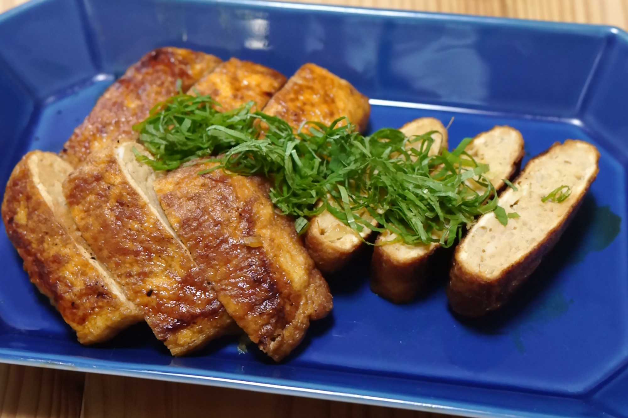 油揚げに鶏ひき肉を詰めたヘルシーだけどボリュームのある一品です。