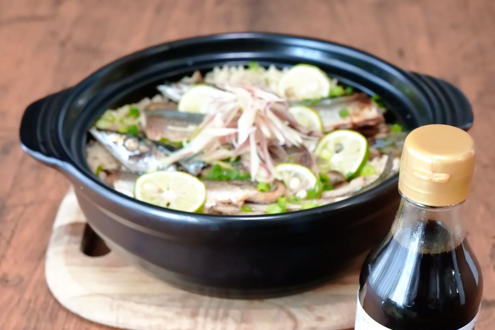 さんまをしょうが醤油で焼いてから炊き込むことで、皮の香ばしさやさんまの旨みがごはん全体に行きわたります。