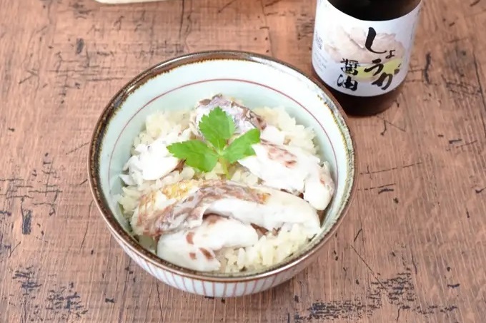 鯛の下味とだし汁にしょうが油を使った土鍋で炊く鯛めしです。