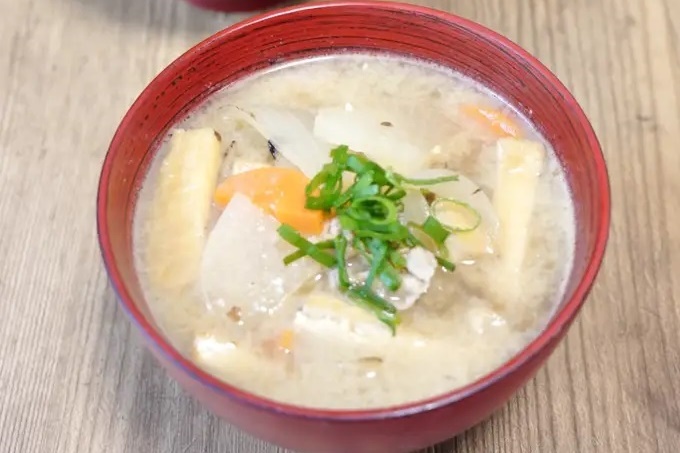 しょうが醤油を使うと出汁がなくても素材の旨味がしっかりと味わえる豚汁ができます。