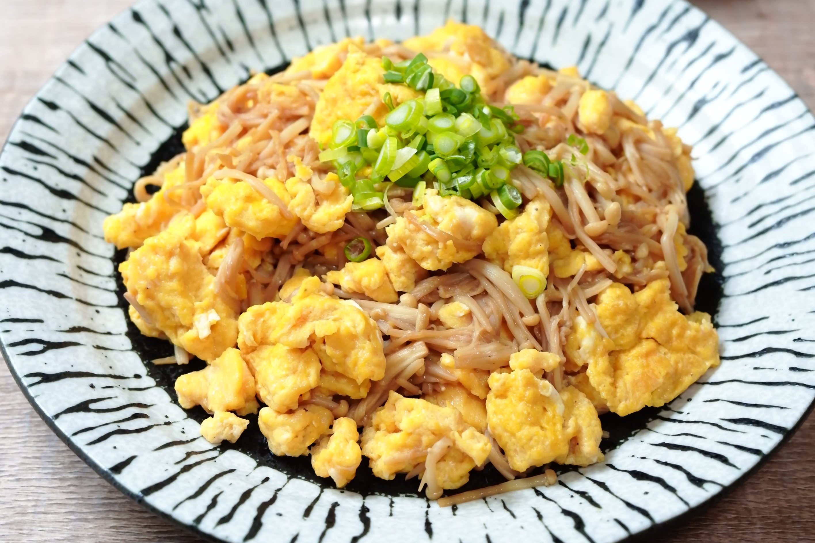 エノキと卵の相性は抜群で、しょうゆの風味が絶品です。