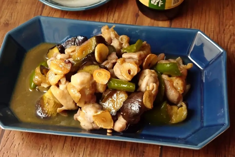 途中で砂糖を加えることで、なすにしっかり味がはいります。
