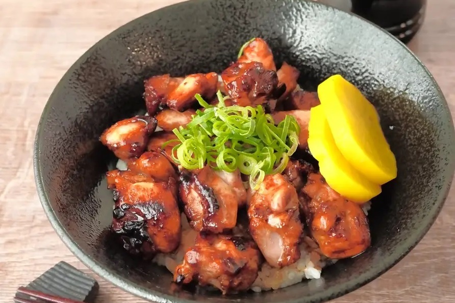 香川名物の「かしわバター丼」は、鶏もも肉と丼のつゆとバターのコクが