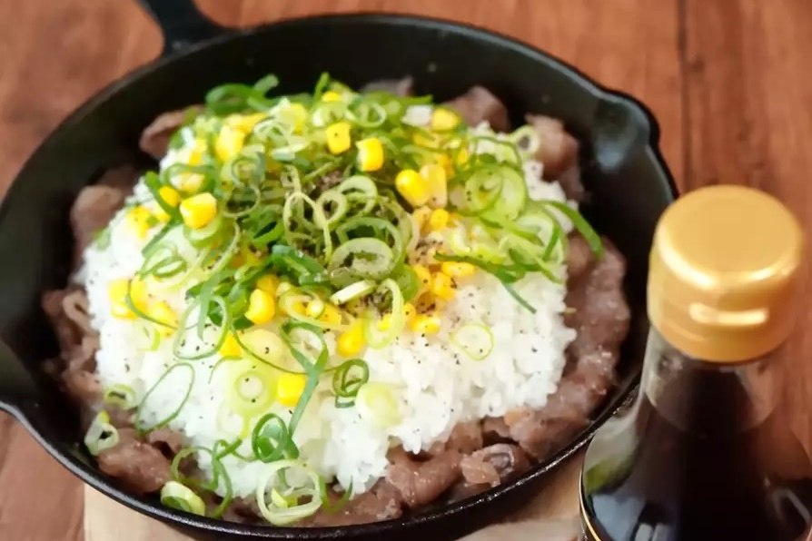 今回はにんにくチップものったボリューム満点のステーキ丼を作りました。